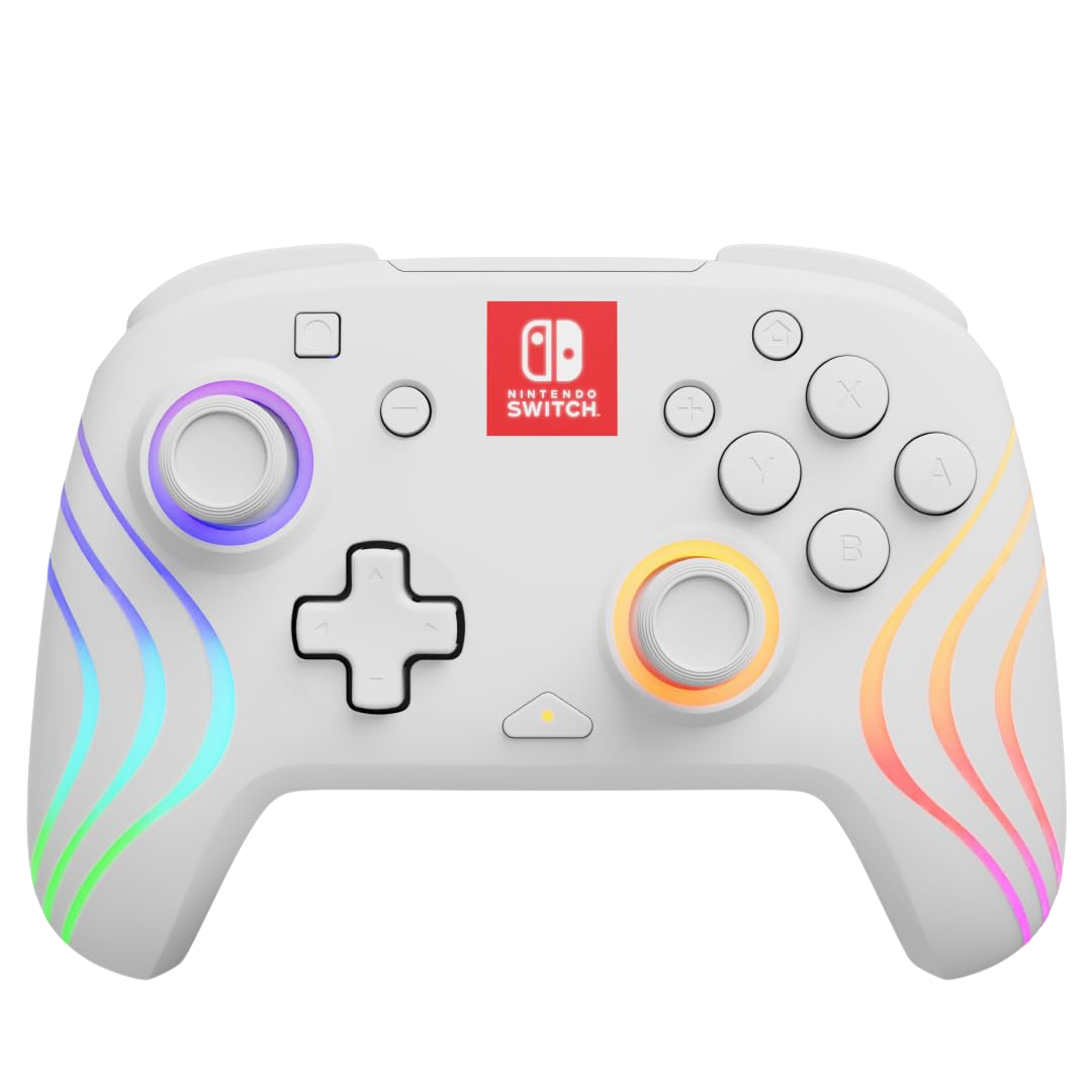 Elevate your gaming experience with the PDP Afterglow Wave Wireless RGB Controller, meticulously designed for Nintendo Switch, Switch Lite, Switch OLED, and Switch 2. This controller stands out with vibrant, customizable lighting: eight RGB zones and four preset modes that let you tailor the mood to your play style. Engineered for comfort and responsiveness, it connects wirelessly with up to a 30-foot range and boasts motion sensors that bring immersive control to compatible games.